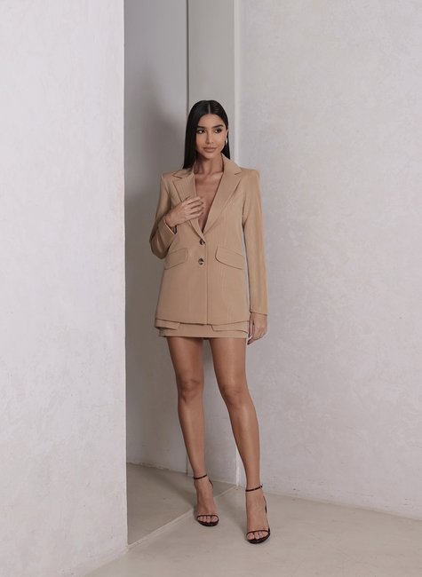 Essa peça é extremamente versátil! Ideal para: Escritório e compromissos de trabalho. Eventos noturnos com styling fashionista. Jantares, festas ou ambientes mais formais. Produções fashion com saia ou short coordenado. Combine com a minissaia no mesmo tecido para um conjunto poderoso e moderno. Use com calça de alfaiataria ou jeans para um visual hi-lo. Crie um look ousado usando o blazer fechado como vestido .Finalize com acessórios dourados ou prata e salto alto.