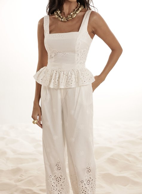 A Blusa Peplum Laise Barrado da DOT é a tradução perfeita do romantismo moderno. Confeccionada em laise com delicados recortes vazados, traz textura e charme artesanal, valorizando a feminilidade de forma sofisticada. Sua modelagem peplum cria uma silhueta marcada na cintura e com leve volume na barra, destacando o corpo com elegância e equilíbrio. O acabamento em barrado trabalhado adiciona um toque refinado e diferenciado, típico das criações exclusivas da DOT.