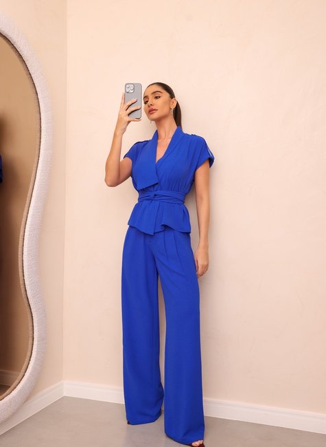 Combine a calça pantalona com uma camisa de seda ou uma blusa de botão ajustada para um visual profissional e sofisticado. O cós assimétrico adiciona um toque de inovação ao visual de escritório, enquanto o corte pantalona proporciona conforto e elegância. Complete com um blazer estruturado e sapatos de salto médio ou mocassins para um look de trabalho refinado. Para um evento formal, como um coquetel ou um jantar, use a calça com um top sofisticado, como um body de renda ou uma blusa com detalhes metálicos. O cós assimétrico e o corte pantalona criam uma silhueta elegante e impactante. Adicione saltos altos e uma clutch elegante para um toque de glamour e sofisticação. Para um estilo casual chic, combine a calça com uma camiseta básica ou um suéter leve. O design assimétrico da cintura e o corte fluído adicionam um elemento de estilo ao visual casual. Complete com tênis brancos ou sandálias de tiras e uma bolsa casual para um look relaxado e moderno. Para uma saída noturna, escolha um top mais ousado, como um top de cetim ou um top com brilho. O cós assimétrico e o corte pantalona oferecem uma base elegante para um visual noturno sofisticado. Finalize com saltos altos e uma bolsa de mão glamourosa para um look impactante e deslumbrante