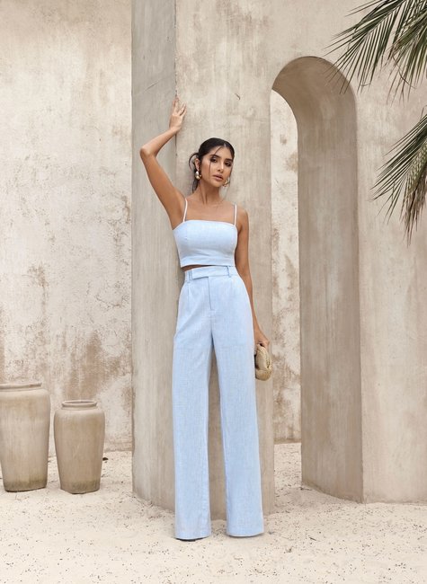 Combine com o cropped coordenado da mesma cor para um look monocromático moderno e fresh. Também vai muito bem com camisas de linho, regatas ajustadas ou blusas de alça fina. Aposte em sandálias de salto bloco ou rasteiras para finalizar.