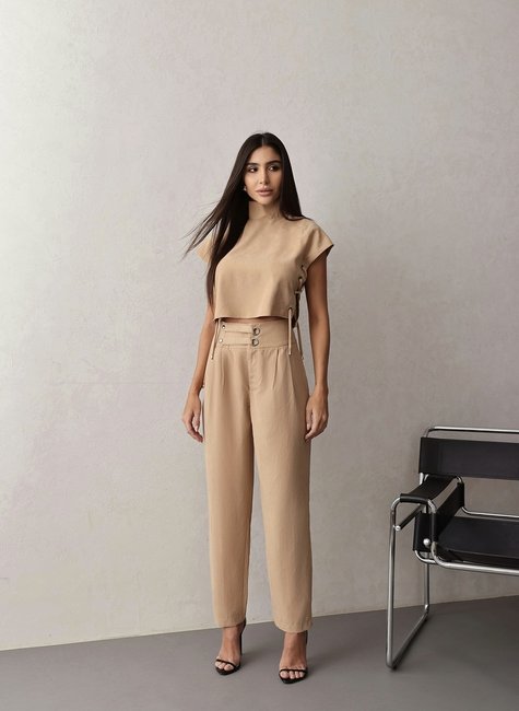 Blusa de Gola Alta: Um detalhe elegante e moderno que alonga a silhueta e traz um ar refinado ao look. Trançado com Ilhós nas Laterais: Um toque diferenciado e sensual, proporcionando ajuste perfeito ao corpo. Tecido Alfaiataria com Toque de Camurça: Textura luxuosa, macia e confortável para um visual sofisticado. Calça de Alfaiataria com Fechamento em Ilhós e Botão de Pressão Metalizado: Um acabamento impecável que agrega modernidade e exclusividade. Modelagem Estruturada: Valoriza a silhueta sem perder o conforto, perfeito para diferentes biotipos. cia deserunt mollit anim id est laborum. Lorem ipsum dolor sit amet, consectetur adipiscing elit, sed do eiusmod tempor incididunt ut labore et dolore magna aliqua. Ut enim ad minim veniam, quis nostrud exercitation ullamco laboris nisi ut aliquip ex ea commodo consequat.