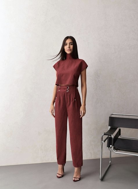 Blusa de Gola Alta: Um detalhe elegante e moderno que alonga a silhueta e traz um ar refinado ao look. Trançado com Ilhós nas Laterais: Um toque diferenciado e sensual, proporcionando ajuste perfeito ao corpo. Tecido Alfaiataria com Toque de Camurça: Textura luxuosa, macia e confortável para um visual sofisticado. Calça de Alfaiataria com Fechamento em Ilhós e Botão de Pressão Metalizado: Um acabamento impecável que agrega modernidade e exclusividade. Modelagem Estruturada: Valoriza a silhueta sem perder o conforto, perfeito para diferentes biotipos. cia deserunt mollit anim id est laborum. Lorem ipsum dolor sit amet, consectetur adipiscing elit, sed do eiusmod tempor incididunt ut labore et dolore magna aliqua. Ut enim ad minim veniam, quis nostrud exercitation ullamco laboris nisi ut aliquip ex ea commodo consequat.