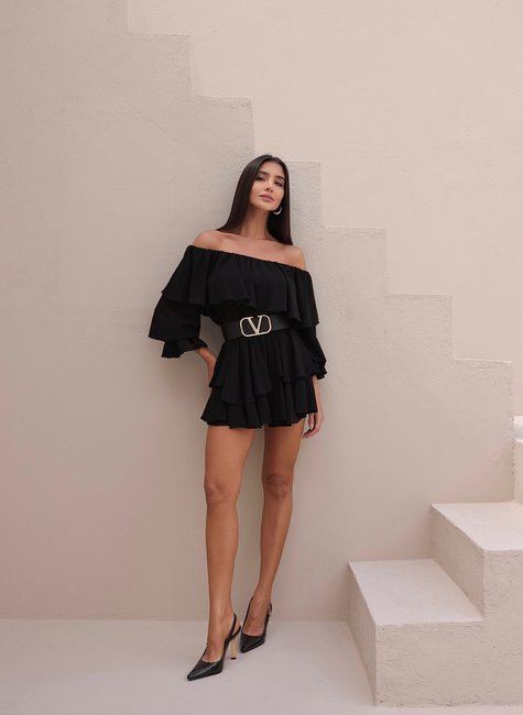 Confeccionada em tecido fluido e de toque suave, a blusa possui decote ombro a ombro com elástico, proporcionando ajuste confortável e valorizando o colo com feminilidade. O detalhe de babado amplo na parte superior adiciona movimento e delicadeza à peça, enquanto as mangas 3/4 bufantes com acabamento em leve babado garantem um toque boêmio e sofisticado. A parte inferior do conjunto é um shorts saia com sobreposição de babados que remetem ao visual de uma mini saia. O modelo é prático e confortável, perfeito para se movimentar com segurança sem perder o charme. O caimento leve e o acabamento fluido acompanham o movimento do corpo, reforçando a estética boho com um toque moderno.