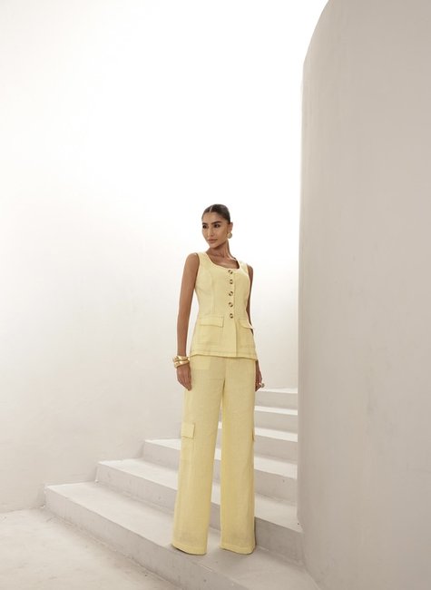 O Conjunto Colete e Calça Cargo Pespontado DOT combina elegância contemporânea com um toque utilitário sofisticado. Moderno e versátil, o conjunto traduz estilo e conforto em uma proposta atual e cheia de personalidade.