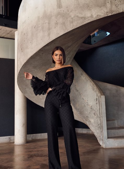 Delicado, feminino e super elegante, o conjunto de renda da DOT é a escolha perfeita para quem ama um visual romântico com toque de sofisticação. A blusa ciganinha valoriza os ombros e traz um charme especial com mangas em babado que proporcionam movimento e leveza. Confeccionada em renda com padronagem em formato de diamante, ela une estilo e feminilidade em cada detalhe. A calça reta, de caimento fluido, completa o conjunto com muita elegância. Possui cós com elástico para maior conforto e praticidade, além de forro interno que garante segurança e discrição. A renda continua sendo o destaque, com um acabamento refinado e sofisticado que eleva o visual.