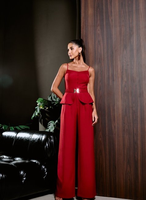 A modelagem é impecável, com recortes estratégicos que desenham o corpo sem marcar. A blusa estruturada com detalhe peplum e o elástico embutido na faixa trazem sustentação e conforto, enquanto a pantalona apresenta cintura alta e pernas amplas — ideal para um visual refinado e equilibrado.