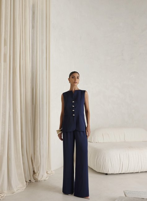 * O Conjunto Pantalona Detalhe Botão da DOT é a definição de elegância contemporânea. Desenvolvido em tecido de alfaiataria leve e sofisticado, o conjunto une conforto, caimento impecável e estilo atemporal. A blusa sem mangas traz um design minimalista, valorizado pelo fechamento frontal com botões dourados exclusivos, que dão um toque de requinte e sofisticação ao visual. Já a calça pantalona completa a produção com sua modelagem fluida e elegante, que alonga a silhueta e proporciona movimento leve e sofisticado.
