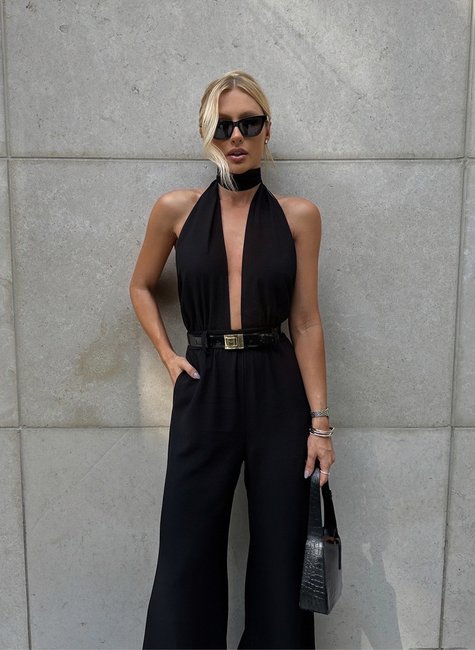 Este macacão apresenta um corte sofisticado com a frente única, que realça os ombros e o colo, criando uma silhueta alongada e graciosa. A versatilidade do design permite que você amarre o pescoço de diferentes formas, seja em um laço delicado ou em um estilo mais solto, adaptando o visual conforme a ocasião e seu estilo pessoal. Na parte das costas, um elástico no cós proporciona um ajuste confortável e flexível, acentuando a cintura e garantindo um caimento perfeito. Isso permite liberdade de movimento, tornando-o ideal para festas, eventos ou até mesmo para um dia casual. O fechamento em zíper na lateral facilita o vestir e despir, garantindo praticidade sem comprometer a estética da peça. Os bolsos laterais adicionam um toque funcional, permitindo que você carregue pequenos itens de forma discreta e prática.
