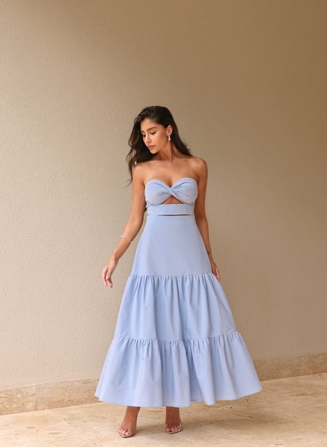 Confeccionado em um material leve e fluido, esse vestido garante um caimento impecável, proporcionando frescor e movimento ao caminhar. A modelagem evasê cria um efeito fluido e elegante, valorizando a silhueta sem marcar o corpo. O comprimento longuete, que vai até a altura da panturrilha, traz um toque moderno e refinado, ideal para diversas ocasiões. O busto possui um torcido sofisticado, que adiciona charme e diferenciação ao design da peça. Proporciona sustentação e um ajuste perfeito ao corpo, garantindo conforto ao longo do dia. Faixa Multifuncional: O grande diferencial desse vestido é a faixa versátil, que pode ser usada de duas formas: Amarrada no pescoço, transformando o vestido em um modelo halter neck para um visual mais sofisticado e glamouroso. Marcando a cintura, destacando a silhueta e criando um efeito elegante e feminino. O design tomara que caia valoriza o colo e traz um toque sensual na medida certa, perfeito para dias mais quentes ou eventos especiais.