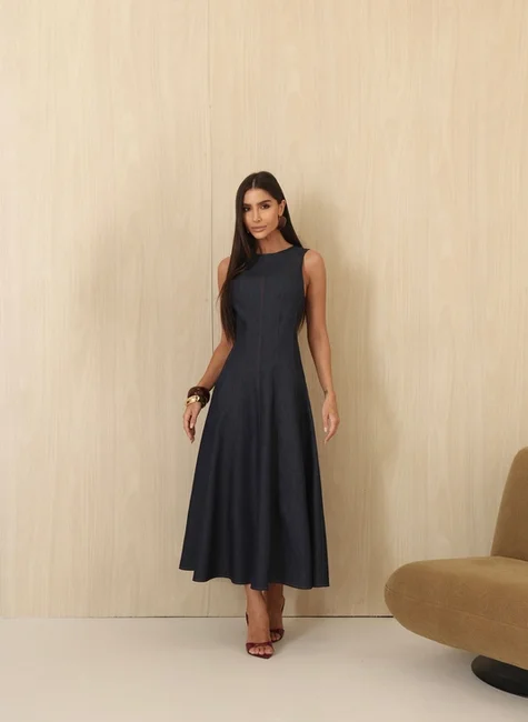 O Vestido Evasê Pesponto é aquele clássico indispensável no guarda-roupa de quem busca estilo, elegância e praticidade em uma única peça.