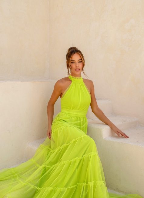 Vantagens de Comprar Vestido Gola Alta Tule na DOT!