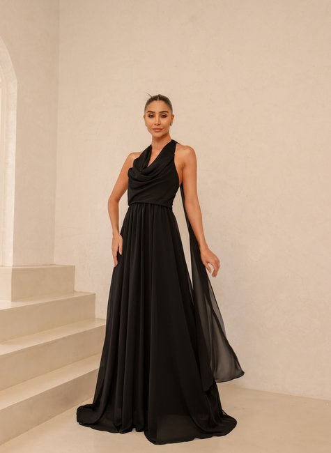 O vestido longo de festa com calda que sai do pescoço da marca DOT é uma peça deslumbrante, perfeita para eventos especiais onde a elegância e o glamour são essenciais. Este vestido combina um design sofisticado com detalhes únicos, criando uma silhueta impactante que certamente chamará a atenção.