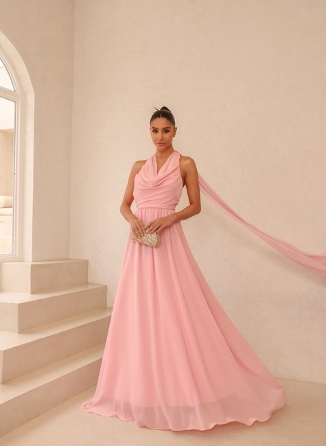 O vestido longo de festa com calda que sai do pescoço da marca DOT é uma peça deslumbrante, perfeita para eventos especiais onde a elegância e o glamour são essenciais. Este vestido combina um design sofisticado com detalhes únicos, criando uma silhueta impactante que certamente chamará a atenção.