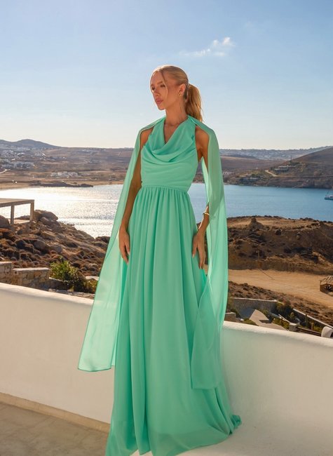 O vestido longo de festa com calda que sai do pescoço da marca DOT é uma peça deslumbrante, perfeita para eventos especiais onde a elegância e o glamour são essenciais. Este vestido combina um design sofisticado com detalhes únicos, criando uma silhueta impactante que certamente chamará a atenção.