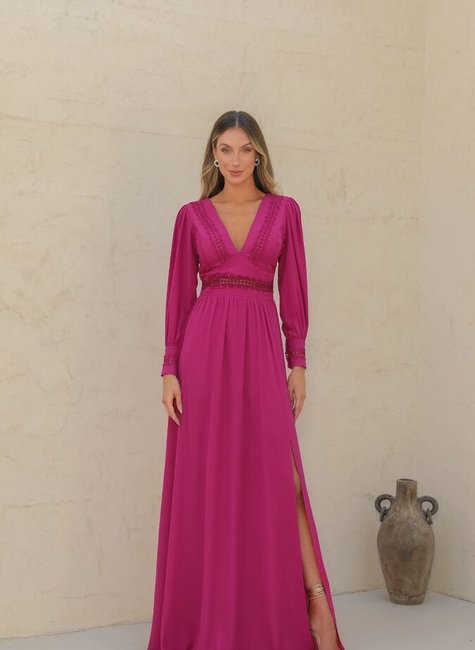 O vestido de festa com decote em V da DOT, mangas longas e detalhes em renda é a escolha ideal para quem deseja brilhar em qualquer evento. Com sua combinação de elegância clássica e toques modernos, ele promete fazer você se sentir confiante e radiante, pronta para arrasar em qualquer ocasião!