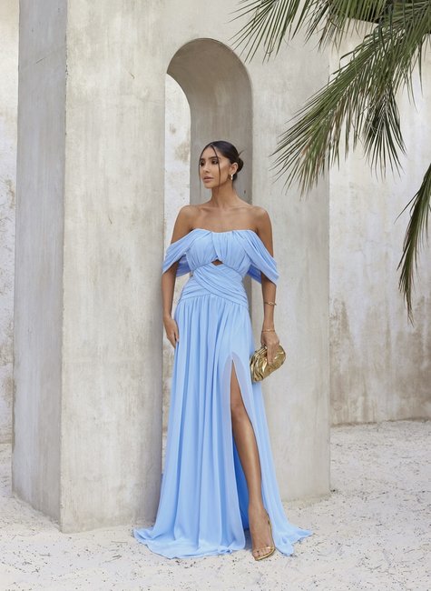 O vestido longo de festa com busto drapeado, mangas jogadas, fechamento de zíper nas costas e fenda da DOT é uma verdadeira declaração de estilo. Com seu design sofisticado e detalhes encantadores, ele se torna uma peça indispensável no guarda-roupa da mulher contemporânea, que busca expressar sua personalidade e elegância em cada ocasião. Uma escolha que certamente garantirá olhares admirados e um visual inesquecível.
