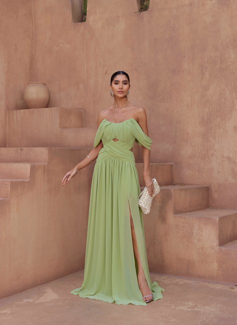 O vestido longo de festa com busto drapeado, mangas jogadas, fechamento de zíper nas costas e fenda da DOT é uma verdadeira declaração de estilo. Com seu design sofisticado e detalhes encantadores, ele se torna uma peça indispensável no guarda-roupa da mulher contemporânea, que busca expressar sua personalidade e elegância em cada ocasião. Uma escolha que certamente garantirá olhares admirados e um visual inesquecível.