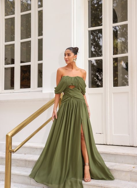 O vestido longo de festa com busto drapeado, mangas jogadas, fechamento de zíper nas costas e fenda da DOT é uma verdadeira declaração de estilo. Com seu design sofisticado e detalhes encantadores, ele se torna uma peça indispensável no guarda-roupa da mulher contemporânea, que busca expressar sua personalidade e elegância em cada ocasião. Uma escolha que certamente garantirá olhares admirados e um visual inesquecível.