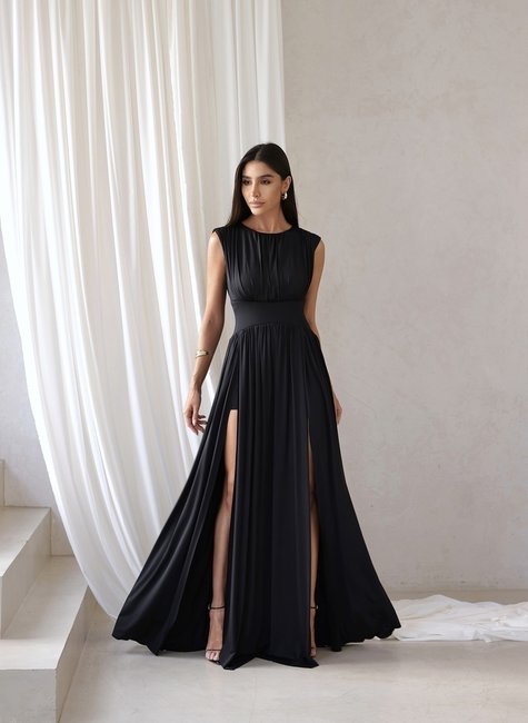 Valoriza a silhueta. Não amassa com facilidade. Ideal para eventos formais. Confortável e com toque macio. Nosso vestido longo com fenda dupla é a escolha perfeita pra brilhar com elegância e atitude.