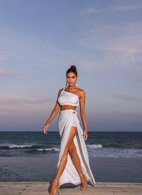 O vestido com amarrações e fenda lateral da DOT é uma peça ousada e sofisticada, perfeita para quem deseja um visual impactante e cheio de estilo. Confeccionado em malha lurex de alta qualidade, o vestido tem um brilho sutil que reflete a luz de maneira elegante, criando um efeito deslumbrante e moderno. O design é pensado para quem busca aliar conforto, sensualidade e sofisticação em um só look.