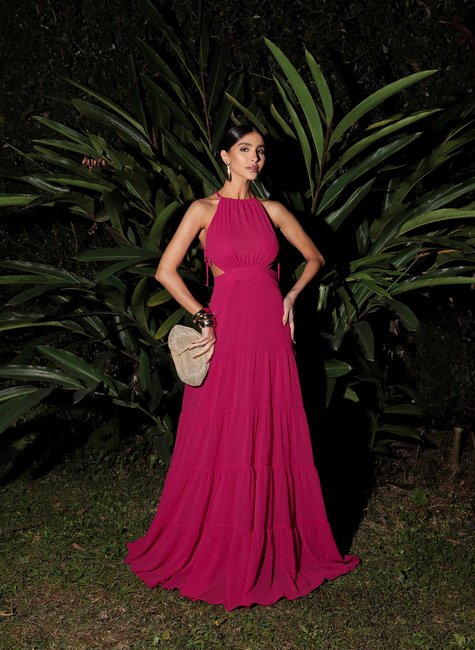O Vestido Longo com Saia em Camadas é a escolha perfeita para quem busca elegância com leveza. Com modelagem fluida e sofisticada, ele traz movimento e charme em cada passo. O busto ajustado valoriza o colo, enquanto o detalhe da cintura marcada realça a silhueta de forma sutil e feminina.
