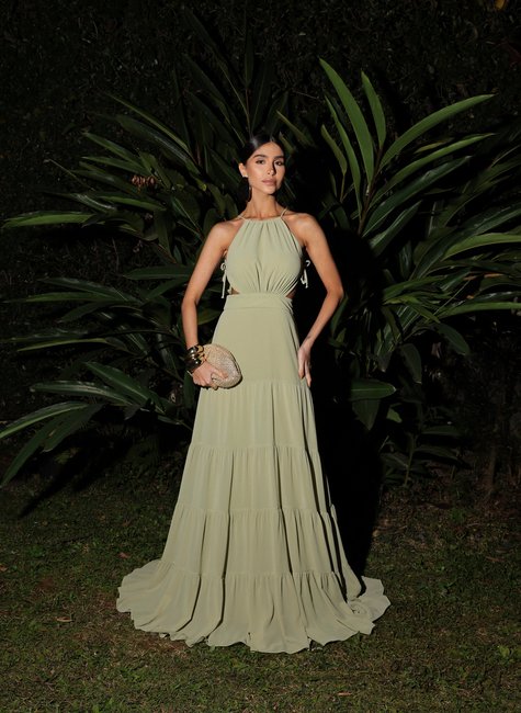 O Vestido Longo com Saia em Camadas é a escolha perfeita para quem busca elegância com leveza. Com modelagem fluida e sofisticada, ele traz movimento e charme em cada passo. O busto ajustado valoriza o colo, enquanto o detalhe da cintura marcada realça a silhueta de forma sutil e feminina.