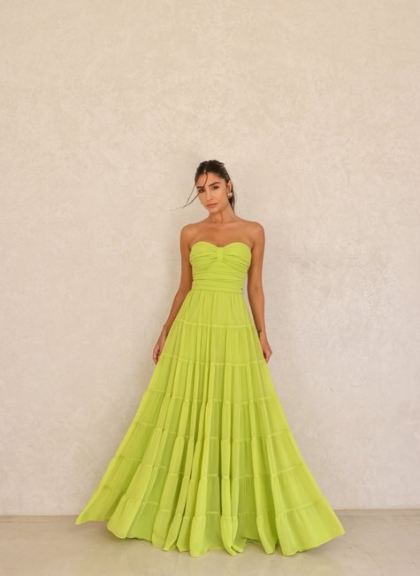 Confeccionado em crepe leve e fluido, proporcionando um toque macio e um caimento esvoaçante. Camadas delicadas que dão movimento à peça, criando um efeito elegante e sofisticado. Sem alça, destacando os ombros e proporcionando um visual sofisticado e feminino. Elástico ou estrutura na parte superior, garantindo segurança e ajuste perfeito ao corpo. Comprimento longo, trazendo um toque clássico e refinado ao look. Camadas leves que proporcionam um efeito fluido e cheio de charme ao caminhar.