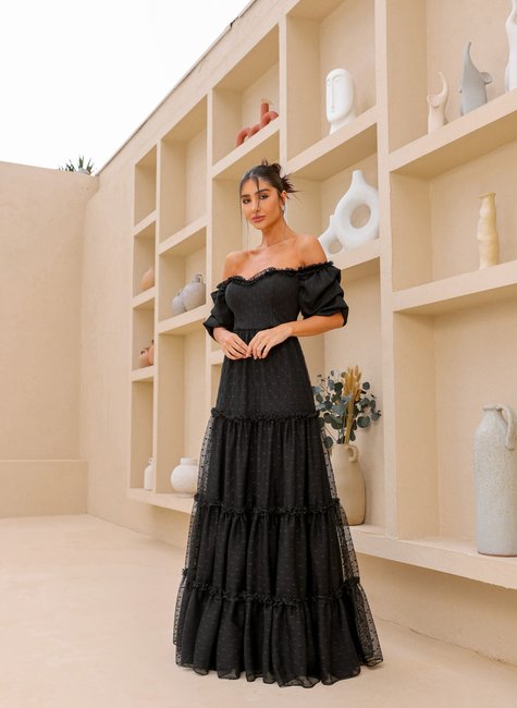 Com o Vestido Longo de Tule com Detalhes de Poá da DOT, você está destinada a se destacar em qualquer ocasião especial. Sinta-se confiante, elegante e pronta para impressionar com uma peça que encapsula a essência da moda sofisticada e atemporal. Adicione essa joia ao seu guarda-roupa e experimente a sensação de ser a personificação da elegância.