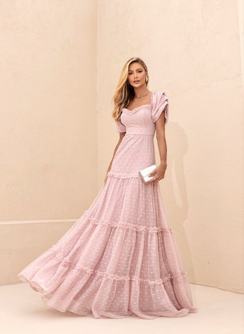 Celebre a beleza atemporal e a feminilidade refinada com nosso Vestido Longo de Tule com Detalhes de Poá. Esta peça deslumbrante foi projetada para a mulher que aprecia a moda como uma forma de expressar sua elegância inata.
