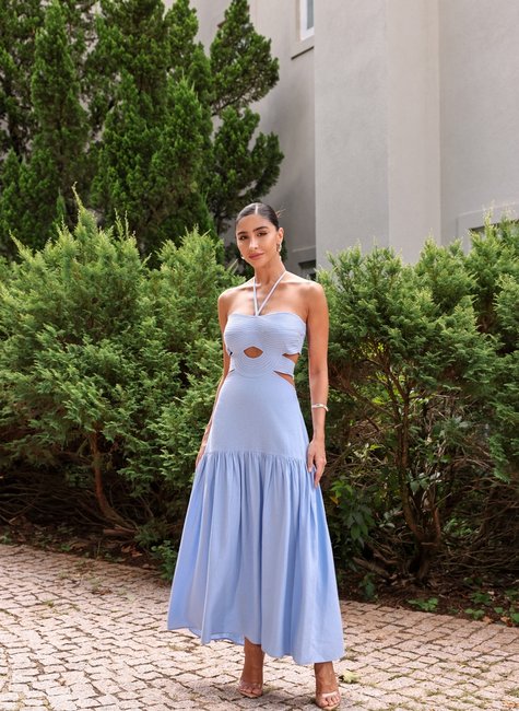 Este vestido longuete é uma peça encantadora que une elegância, modernidade e um toque de sensualidade em um design sofisticado.