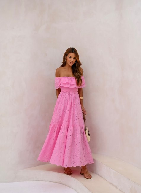 O Vestido Longuete Laise Ombro a Ombro DOT é a escolha perfeita para quem busca sofisticação e frescor em um só look. Confeccionado em tecido de laise bordada, possui detalhes delicados em arabescos vazados que trazem leveza e romantismo à peça. Seu design ombro a ombro com babado duplo valoriza o colo feminino de forma elegante e charmosa, enquanto a modelagem longuete evasê proporciona movimento fluido e caimento impecável.
