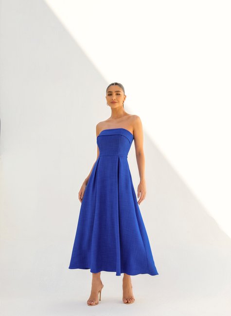 Vestido Midi Sem Alça Pala Dobrada DOT.