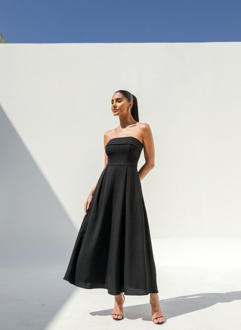 Vestido Midi Sem Alça Pala Dobrada DOT.