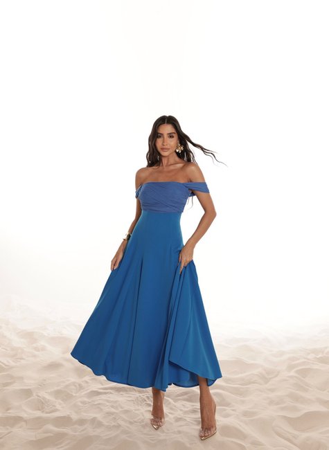 Vestido Saia Evasê Com Tule DOT.