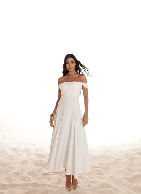 * Comprimento midi alongado: transmite elegância atemporal e deixa o look leve, moderno e versátil.
